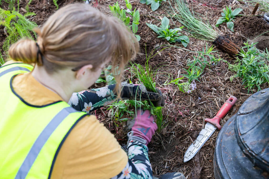 Over June and early July, the beds were prepped and replanted with native species—plants that can handle foot traffic, grow strong in our local soil, and support a healthier ecosystem. The refreshed beds also included thoughtfully spaced footpaths, to help lessen traffic on the plantings themselves.